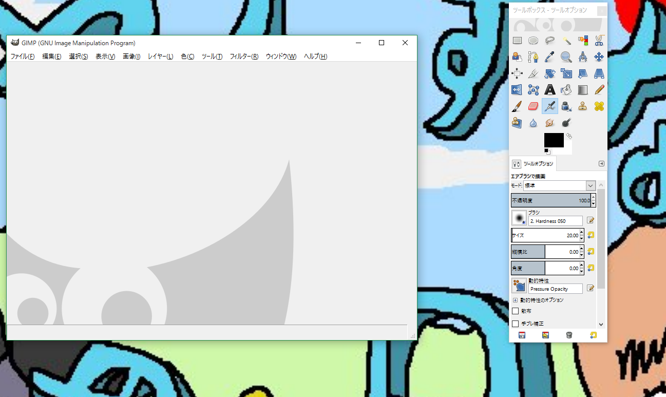 まずginpの最新版を起動。(私の使ってるのは現在2.8)