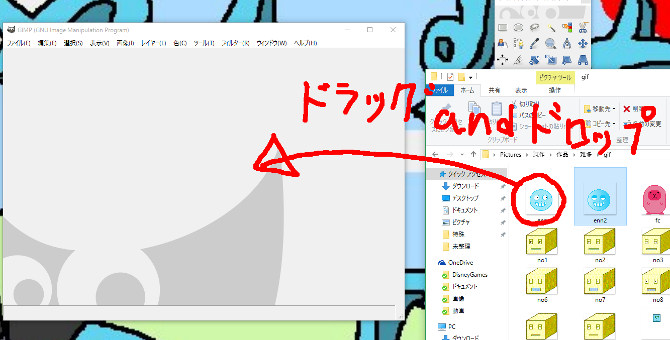 ドラッグアンドドロップします。