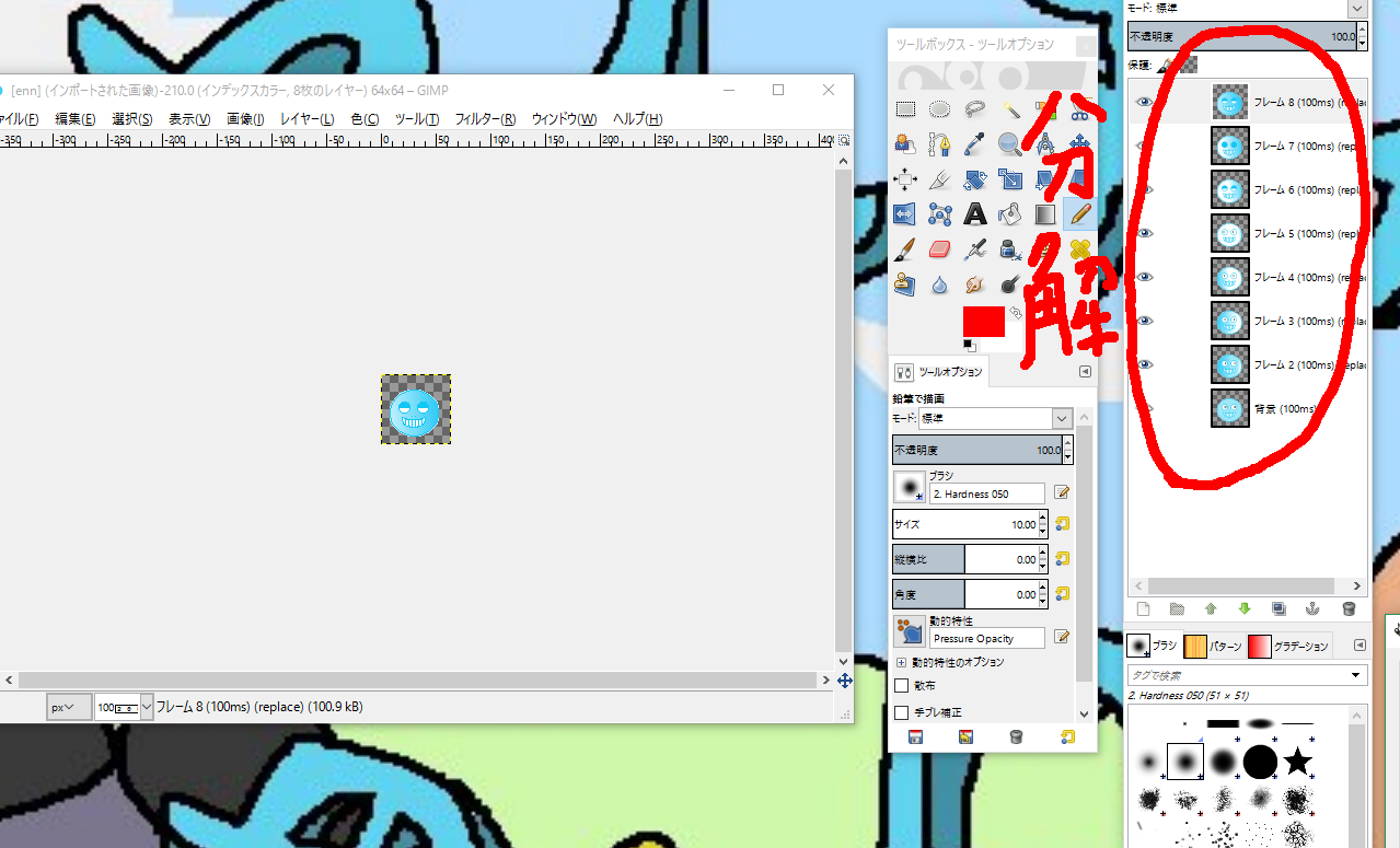 こういうような画面になるとおもうので上の青い顔のgifファイルを